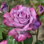 Όμορφη ποικιλία κήπου τριαντάφυλλου με κομψά, ημι-μεγάλα άνθη σε έντονο μπλε-μωβ χρώμα με λεπτό άρωμα. Αναπτύσσεται ως συμπαγές θάμνος, κατάλληλος για παρτέρια, περιθώρια ή γλάστρες, με υγιή, πράσινα φύλλα και ανθεκτικότητα σε ασθένειες. Ανθίζει επανειλημμένα κατά τη διάρκεια της σεζόν και προτιμά ηλιόλουστες θέσεις με καλά στραγγιζόμενο έδαφος.