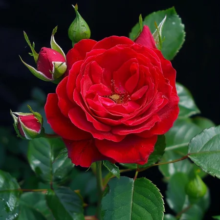 Κομπακτρόδα εδαφοκάλυψης με έντονα κόκκινα άνθη. Τα άνθη είναι μεγάλα, ημίδιπλα, με ευχάριστο άρωμα. Ανθεκτική σε ασθένειες και γρήγορη ανάπτυξη, ιδανική για παρτέρια, αλπινάρια ή ως σημείο έμφασης στον κήπο. Φύλλα γυαλιστερά, σκούρα πράσινα, ανθίζει επανειλημμένα κατά τη σεζόν.