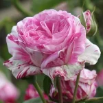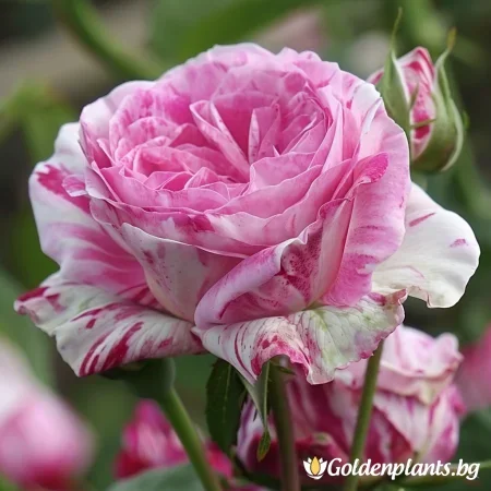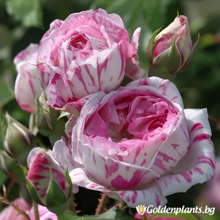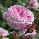 Κλασικό πολύχρωμο τριαντάφυλλο από την ομάδα των κεντιφόλιων, γνωστό για τα πυκνά, αρωματικά του άνθη και το διακοσμητικό φύλλωμά του. Τα άνθη είναι ροζ με λευκές νευρώσεις, ημι-μεγάλα έως μεγάλα, με εξαιρετικό άρωμα. Τα φύλλα είναι σκούρα πράσινα, ελαφρώς λείες, και η ανάπτυξη είναι συμπαγής και θάμνου, κατάλληλη για κήπους, παρτέρια ή γλάστρες. Ανθίζει άφθονα το καλοκαίρι, με μέτρια ανθεκτικότητα σε ασθένειες.